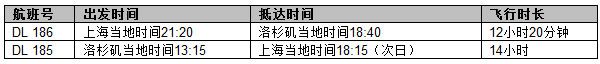达美航空往返洛杉矶与上海的航班将使用波音777-200LR机型,“至臻商务舱”设有37个全平躺式座椅,“优悦经济舱”设有36个座椅,经济舱则有218个座位。旅客将可通过达美航空洛杉矶至上海的航班服务前往中国超过25个城市,同时也能通过上海至洛杉矶的航班服务前往美国、加拿大和拉丁美洲的40个地区。航班的详细信息请见下方。