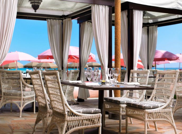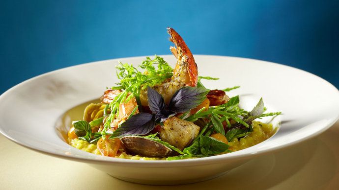 皇家夏威夷酒店的“蔚蓝(Azure)”是本地远近闻名的海滨高级餐厅(仅提供晚餐)。暮色降临后,餐厅的盈盈烛光映照着珍珠色的马赛克外墙以及精美舒适的沙发和靠枕,营造出分外浪漫迷人氛围。 蔚蓝餐厅以供应海鲜大餐为特色,从黄鳍金枪鱼到红鲷鱼等各式海鲜,餐厅坚持选用每日清晨在夏威夷著名的38号码头(Pier 38)鱼市拍卖会上所购的本地新鲜海鲜作食材,特别采用高温芳香焙烧精心烹制,或搭配颇具热带风味的明亮水果或菜蔬,烹制新颖的夏威夷特色海鲜大餐。经验丰富的服务生和侍酒师也会为食客推荐多种精品葡萄酒来完美搭配您所选择的精致海鲜。