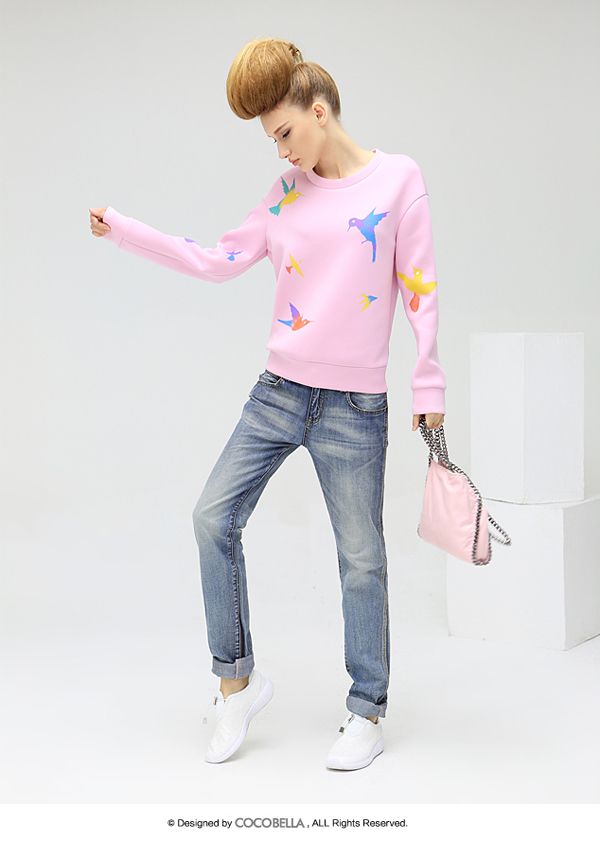 而2015秋季新品韩版宽松长袖套头上衣t恤款女士卫衣TE209更是继承了这种精神,无论是酷黑,Tiffany绿,还是玫红都能让人眼前一亮,慵懒的精神一扫而光;而秋季新品宽松长袖休闲款套头针织衫女士毛衣YN132,简约的欧式版型剪裁,包容性很好。连帽的造型很是考究,前领处自然的荡褶,修饰脸型,更添随性气质抽绳的设计,打破平面感,时尚减龄没商量;更值得一提的是宽松长袖套头加厚印花上衣女t恤款潮卫衣TE203,每只小鸟的造型背后都是对渐变彩效果与印染工艺的严格把控,非常的耗时耗力。