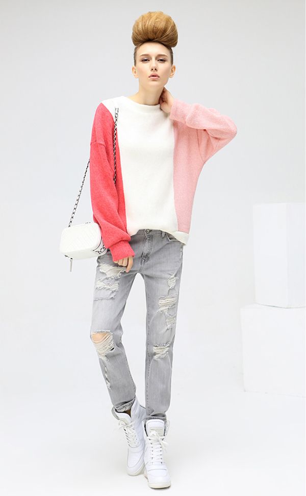 此外,COCOBELLA 套头圆领拼色针织衫长袖宽松女毛衣YN122,也是当下季节里时髦女郎穿得出气场的必备单品之一哦!秀场同款大色块撞色毛衣,设计非常大胆,左右拼接色块采用了渐变撞色的方式,打破了人们印象中固有的单色撞色,给衣服注入一股新鲜活力,欧美范儿十足!