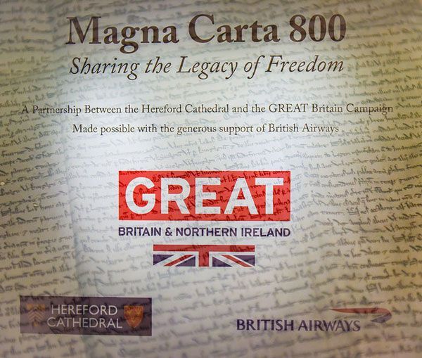 这份1217年版的《大宪章》将会展开6万5000英里的环球之旅,踏足9个城市,包括北京、广州和上海,跨越三大洲。展览由「非凡的英国」活动主办,赫里福德大教堂协办,并在英国航公司的慷慨支持下得以进行。《大宪章》将与约翰王1215年从伦尼米德发出的现存唯一一份手稿一起展出,此信乃发给英国每个郡县的王室官员,宣布《大宪章》的条款。
