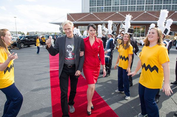 Craig Schulz陪同史努比参加向其授予“达美航空荣誉飞行员”称号的庆祝仪式