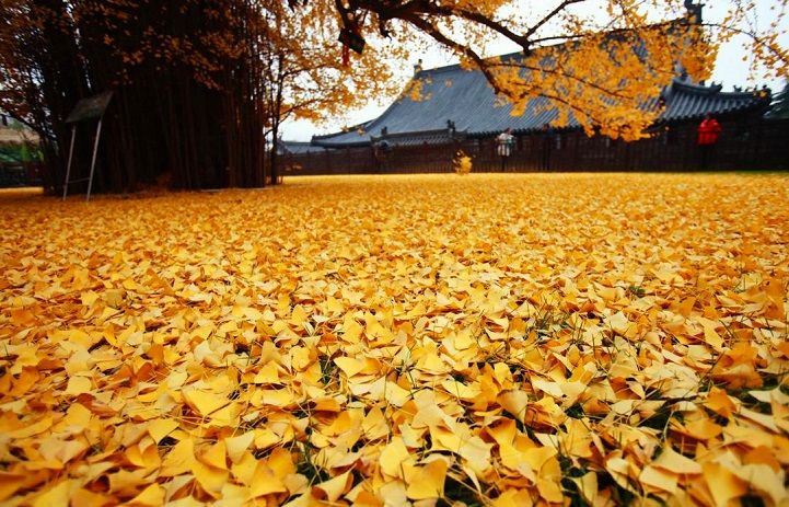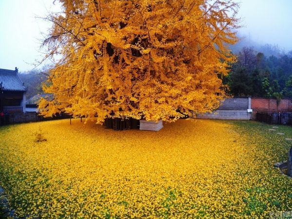 一年一次,这座1400岁的银杏树展示了它美丽而壮观的一面,成千上万的叶子变成一个辐射的黄金灯罩。位于古观音寺墙,在中国中南地区的山地,以此吸引来自世界各地的游客。由于树叶落下,创造了一个充满活力的黄金海洋,游客们抓住机会拍摄到犹如彩色地毯的照片。 这棵银杏树种植于唐太宗李世民,唐代(618-907)的创始人,这个银杏树吸引了来自中国各地的人。银杏树也被称为银杏树是一种古老的树种,原产于中国。除了它在秋天所采用的神奇的黄色,这一特殊种类的树也非常有用,作为食物的来源,并配备了各种医疗福利,在传统的东方医学里可以常见到。 这特别令人印象深刻的千年银杏树当然是受欢迎的,但是作为一个物种,这棵树也是广受尊重的好处和该地区古代的见证。