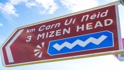 “野性大西洋之路”(Wild Atlantic Way) 从北部的多尼戈尔(Donegal)一直到南部的科克(Cork),绵延整个爱尔兰西海岸2500公里,穿越康尼马拉(Connemara)、巴仑(The Burren)、高威湾(Galway Bay)和凯里(Kerry)等地区。一路上能发现众多蓝底的路牌,上面画着一道白色的折线,这是爱尔兰旅游局为“野性大西洋之路”专门设置的标识。