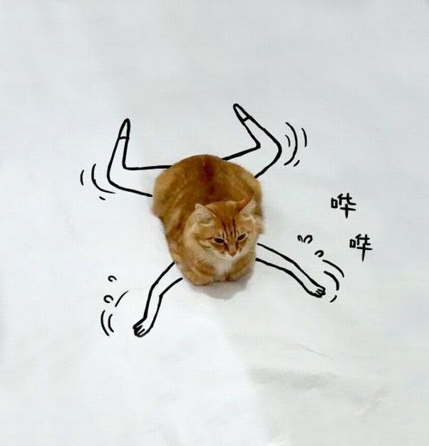只要有一点想象力,一张普通的喵星人的照片提供了无限可能性的涂鸦乐趣。一朋友先把喵星人漫不经心地躺在白色的地面照片发到微博上。无聊的用户然后把自己的想法进一步绘画来创作涂鸦的挑战,并邀请任何人下载图片把喵星人添加到新环境和有趣的冒险。 结果把喵星人作为许多虚幻的东西。只有寥寥几笔,但很有趣,有的喵星人正在玩滑板,翱翔在天空的云,并给唐纳德特朗普急需的发型更新。玩了流行的“catloaf”的位置,有人把喵星人甚至变成一块面包。下面来看看我们的一些最爱涂鸦作品。
