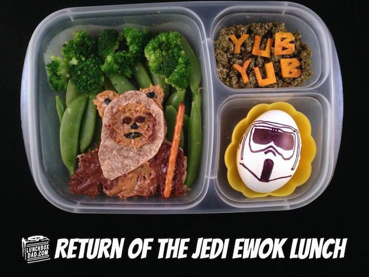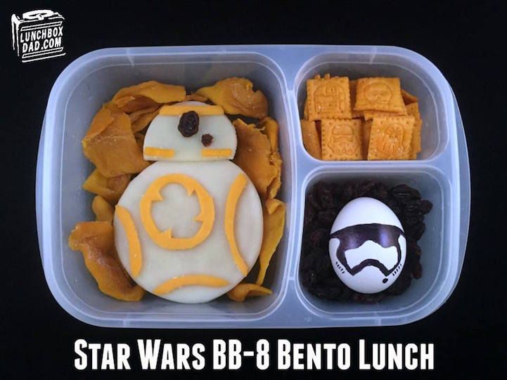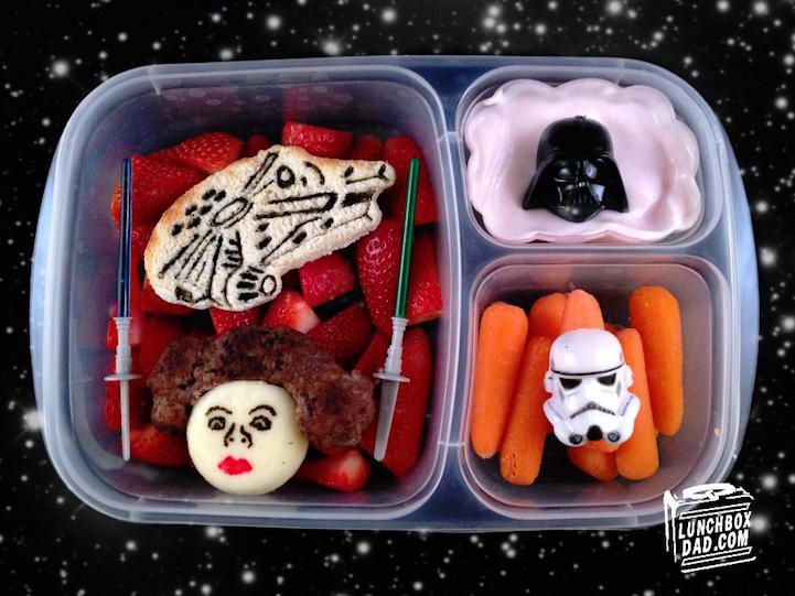 超有爱 这是国外一个爸爸给孩子做的一份健康的“星球大战”便当,发挥你的想象为自己的孩子做一份喜欢而且又健康的午餐吧。