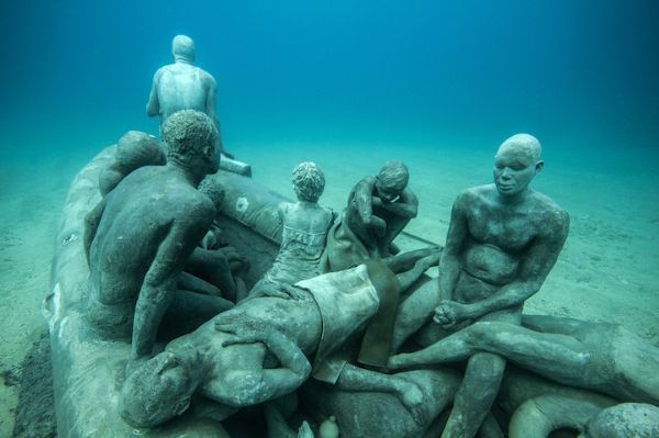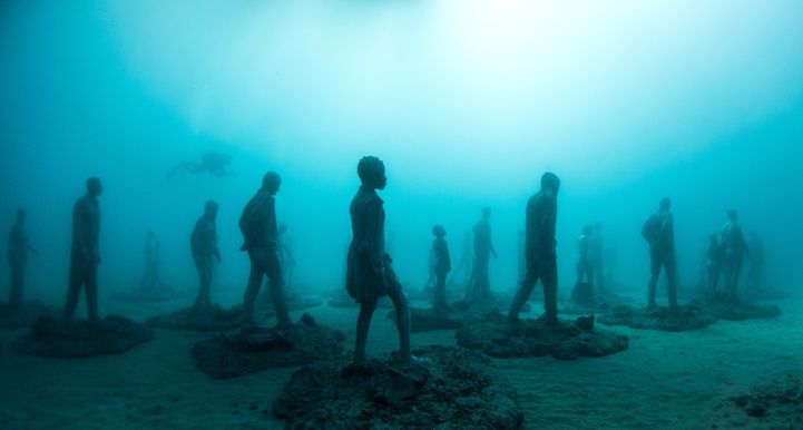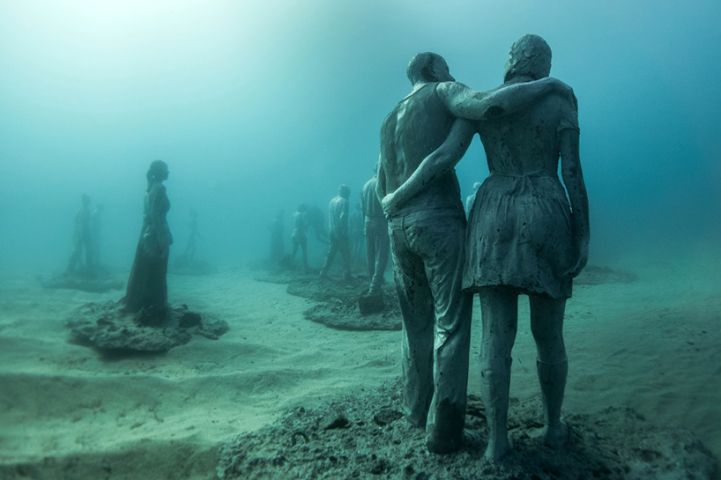十四米之下,大西洋海洋博物馆,第一个水下的当代艺术博物馆。艺术家杰森-de-泰勒创造了一系列雕塑装置在海底。 博物馆位于大西洋的兰萨罗特岛海岸。2月25日,它将开放浮潜和潜水。