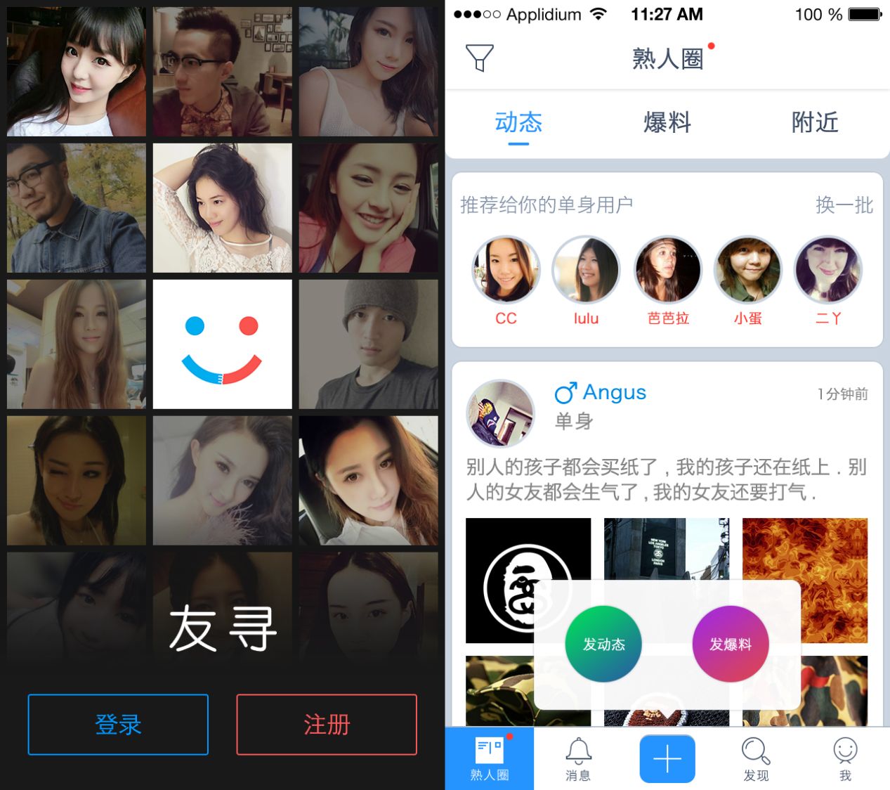 手机里的每一个app其实都对应着某个层级的马斯洛需求,从初级的衣食住行到高级的装逼作精,莫不如此,友寻这款app针对最本质的搞对象需求,get到每一个人的G点,通过友寻能结识朋友的朋友,免除陌生人间的安全隐患,也突破了熟人之间交友界限,还有漂流瓶,匿名暗恋等羞羞玩法嘿嘿嘿,总之,治疗单身病效果极佳。