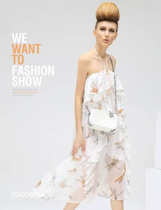 COCOBELLA新款夏装推出的雪精灵系列,轻透雪白的薄纱,和视觉做着若隐若现的游戏。Off shoulder的设计,巧妙露出肩部线条,挂脖吊带的细节,不易掉落的同时更丰富了视觉效果。欧美范飘逸印花雪纺吊脖女连衣裙夏DS421,群身多道荷叶边交错,层次感无可挑剔。值得称道的是,全部都是纯手工卷边,费时费料,只为你每一次上身灵动飘逸的仙范出镜。