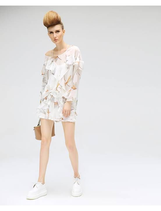 而欧美范时尚荷叶边休闲印花短裤女潮PT207,采用立体裁剪,从每个角度看过去,都是丰盈立体的效果,雪纺内衬,顺滑亲肤,透气性好,贴身穿着舒适无比。