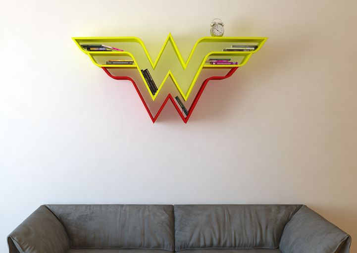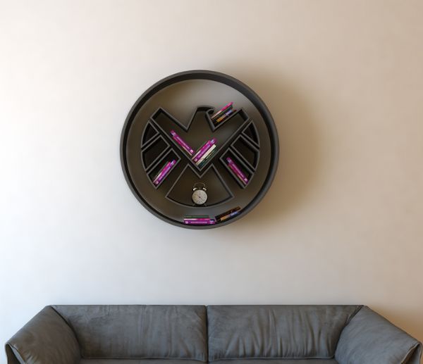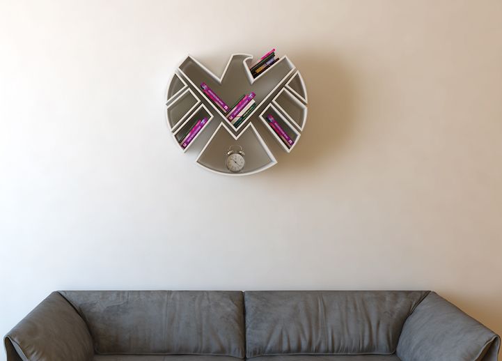 创意的书架 形状像超级英雄的标志,其中有超人,美国队长,神奇女侠,和神盾局的标志,各有其标志性的理性再现为醒目的木板,有足够的空间为您最喜爱的书籍和小摆设。喜欢就哦拿去吧。