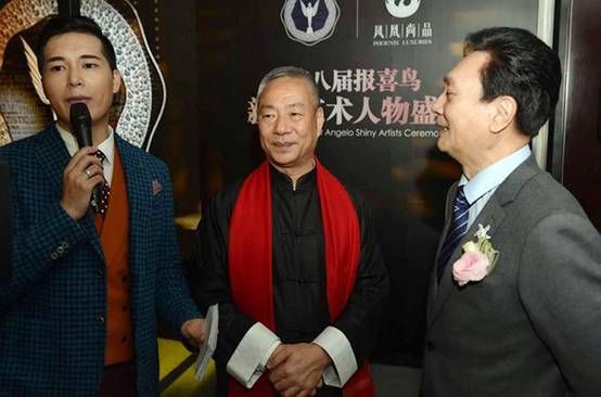 报喜鸟董事长吴志泽先生(中)与表演艺术家梁波罗先生(右)