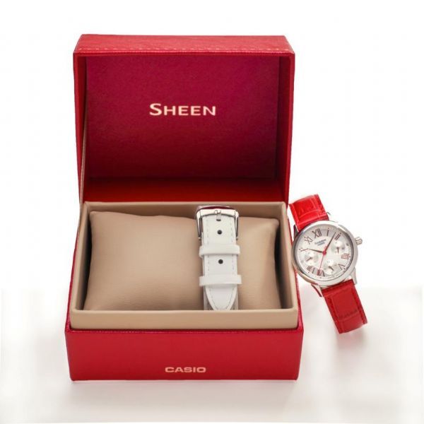 除了日常着装以外,职场女性的衣橱里往往还有几套清新优雅的裙装,以备出席各种宴会party。SHEEN特别增加SHE-3049系列限量款SHE-3049LTD-7A,娇媚明艳的红色在聚光灯下流淌着浪漫风韵,令人怦然心动。腕表还赠送白色表带,让你能一改红色魅惑,纤巧可人。专属表盒简约复古,尽显SHE-3049LTD-7A作为限量款的高端大气。