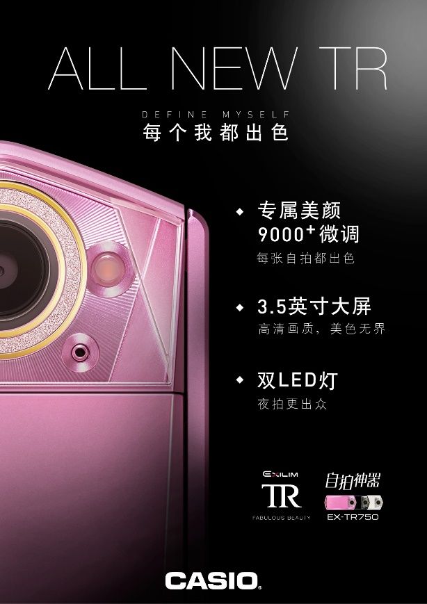 爱美是每个女生的天性,自拍让美丽得以保留。卡西欧相机EXILIM TR系列作为俘获女人心的自拍神器,致力于为所有女性记录并提供超越自我想象的美。2017年1月23日,自拍神器EX-TR750新款发布,通过多样化的美颜功能,打造新自拍风格潮流下的专属美颜,让 “每个我都出色”!