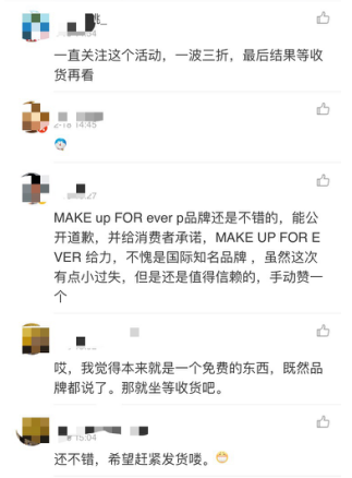 不管是官方微博、微淘,还是消费者们自己的微博、微信,都在这场风波之后,表达出对品牌的一致赞赏富有担当的态度表示认可和赞扬,由一场舆论风波开始,却以收获更多粉丝结束,是对MAKE UP FOR EVER以粉丝为重的诚意的回馈。