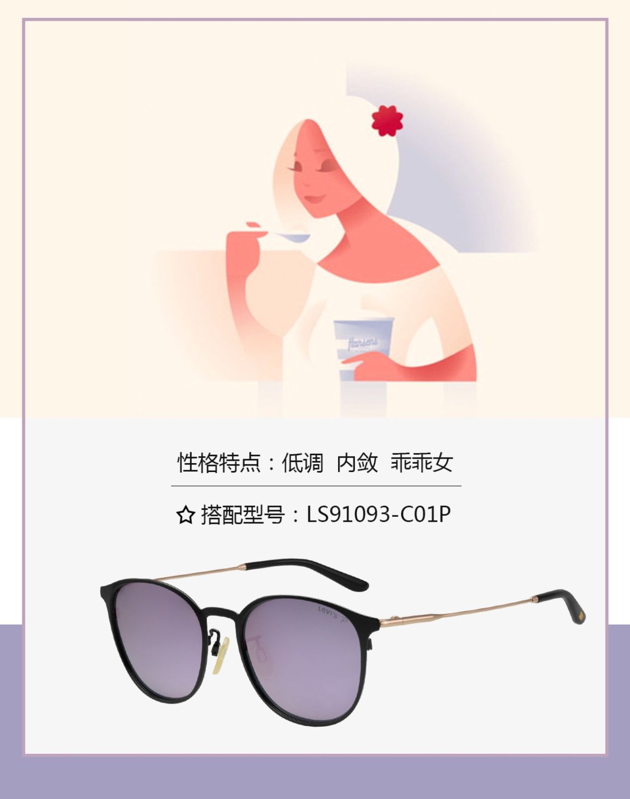 好物推荐:即使你是低调文静的妹子,也要凹一副墨镜,适时放飞一下。不喜欢浮夸的款式,就选一副经典时尚款。LS91093-C01P复古款式配合简约流丽设计,低调不张扬,细致的工艺呼应细腻的内心。 生活还是那么艰难,但她们有彼此就再也不会孤单。不管你是高冷是活泼还是安静,Levi’s眼镜都能为你的性格“调试”适合你的那一款!