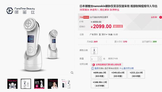因此,家用美容仪的便利性以及女性对美的追求,使得此类产品一面世就受到各年龄阶段女性的追捧。与上美容院相比,家用美容仪产品使用简单方便,价格也很亲民,一般在1000-5000元之间,可以长期使用、多人使用。而且,家用美容仪一般精致小巧、便于携带,可以不受时间地点局限随时随地根据情况进行美容护理。因而,作为正规美容院护理的延伸和补充,家用美容仪产品受众广泛、消费门槛低,拥有极大的市场空间。就目前的一些市场信息来看,这很像是十年前的小家电行业。不过,与小家电产品的不同之处在于,家用美容仪更多的是个人属性,也就是说家里如果有多位女性的话,重复购买、不同功能的需求可能比小家电更大。以日本nanoTime Beauty(娜蜜丝)的活肤仪为例,这是一款配合女性各类水状护肤品雾化使用的工具性产品,功能并不复杂但是因为针对性非常强所以受欢迎程度非常高。
