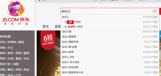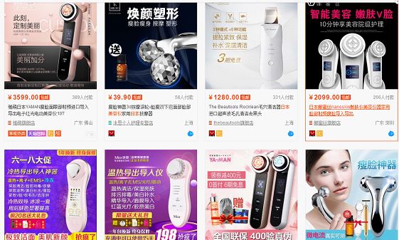 记者随机在京东输入“美容仪”三个字搜索,结果显示出蒸脸器、洁面仪、喷雾仪、离子导入导出、电子美容仪等不同产品,功能多种多样,品牌数量众多,价格也不等;同时,借助海外代购、跨境电商渠道,一些海外美容仪器品牌也得以进入中国市场。