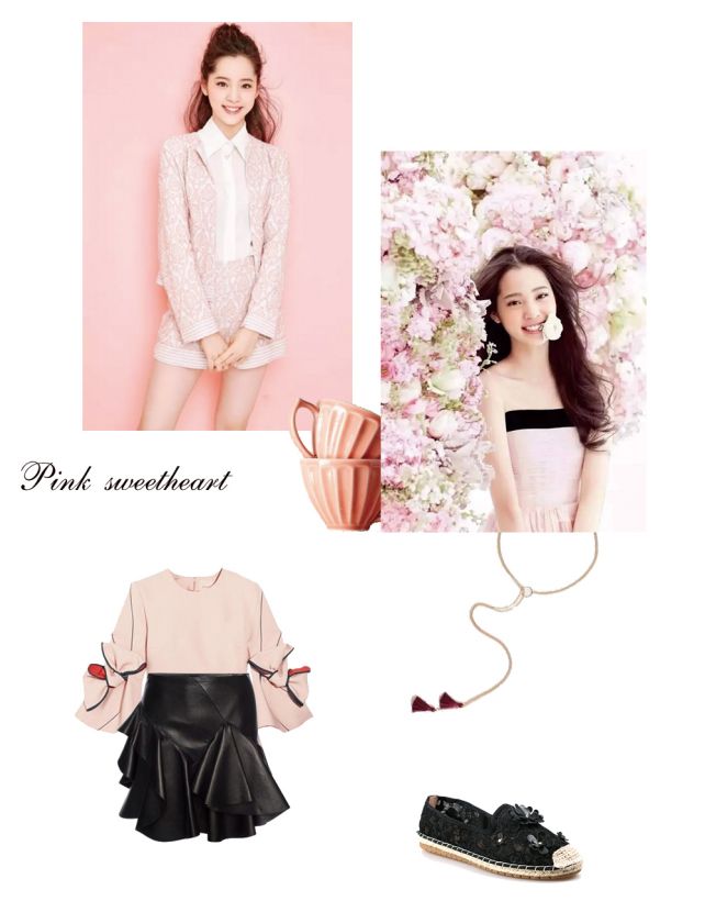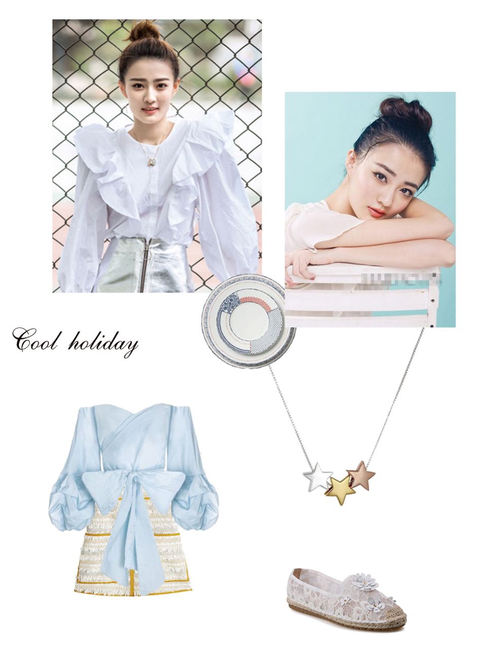 徐璐原图来自HAIBAO 清凉夏日适合穿着清淡的颜色去度假,选择线条流畅的冰蓝色荷叶边上衣搭配白色立体花卉的透气渔夫鞋,让夏天清凉到底。 风格2、甜蜜约会 你可以这样搭▼——欧阳娜娜展示