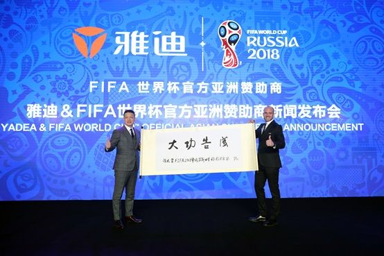 2月8日上午,FIFA(国际足联)与全球高端电动车领导品牌雅迪在上海外滩联合宣布,雅迪入选2018年FIFA俄罗斯世界杯官方区域赞助商。