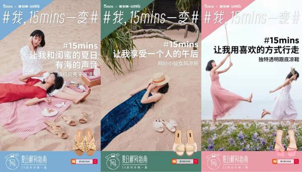 这场创意营销活动从少女心出发,在这个黏糊糊的天气里,为15mins女孩送上专属夏日除闷指南——拥有甜蜜香气的定制“除闷剂”为女孩们一扫夏日的烦闷,穿上美美的凉鞋开启活力美好的夏日时光。