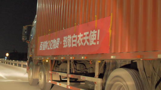 (2月21日,百雀羚第三批捐赠物资送达武汉雷神山医院)