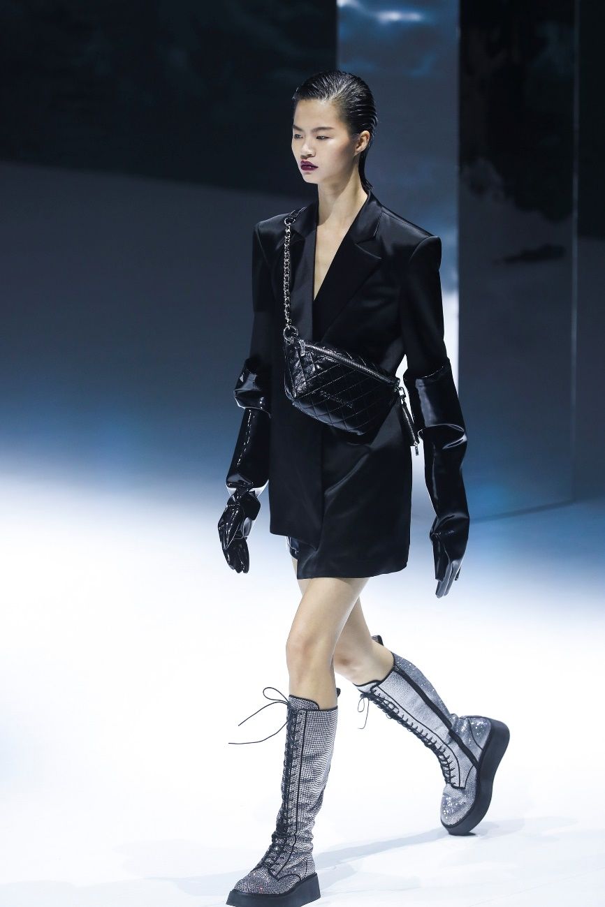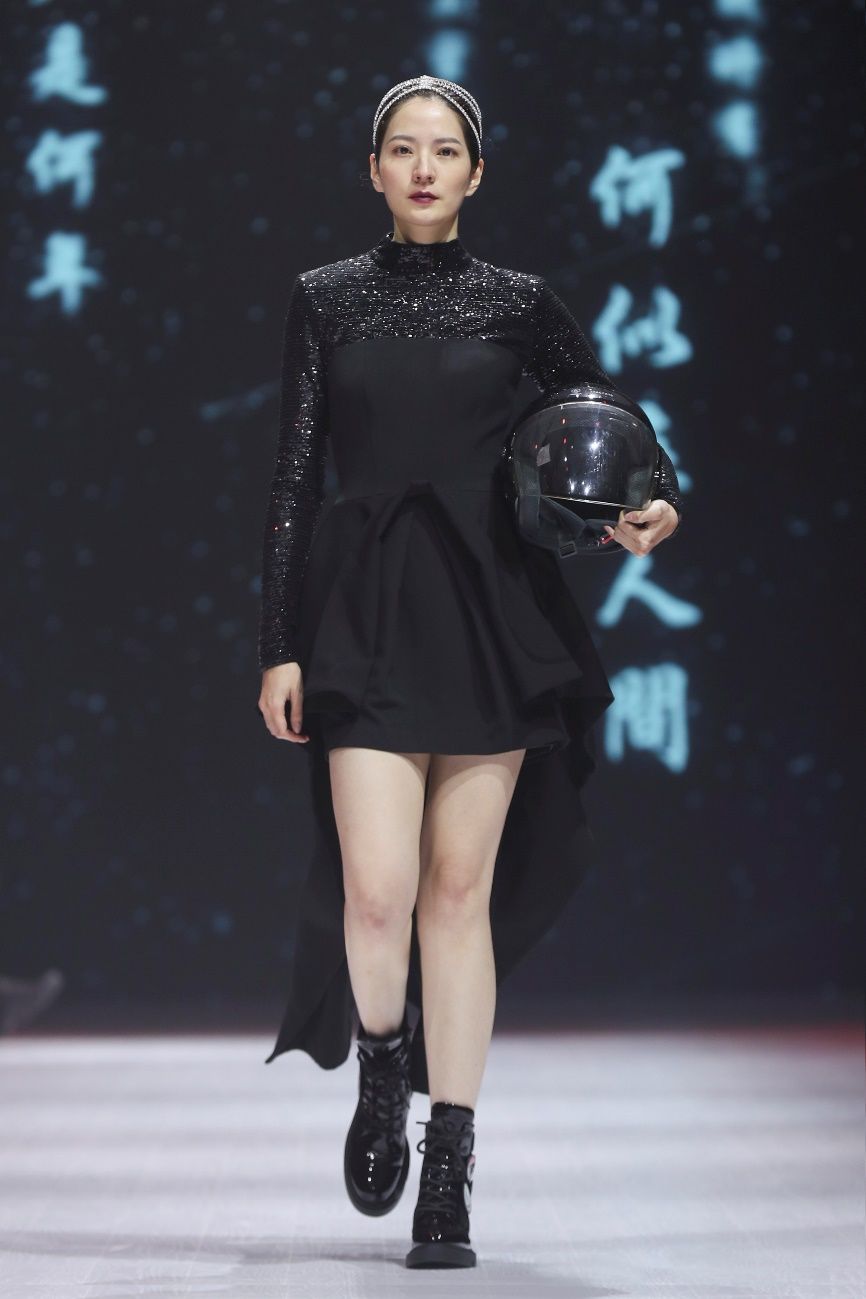 而百丽品牌代言人李宇春,一出场便收割了不少闪光灯和尖叫声。利落的短发、精致的妆容,一袭白色西装裙,搭配BELLE最新暗黑光影系列马丁靴,轻松拉长身线比例,穿出酷雅风范。