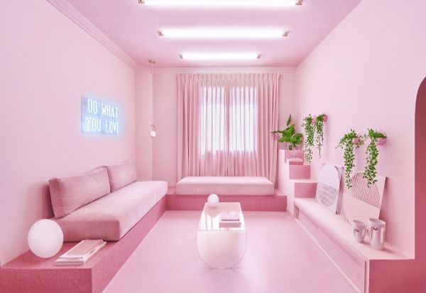 单色空间的想法可能会让人想到鲜明的黑白房间,但是Patricia Bustos Studios重新定义了这间全粉红色出租公寓中的单色空间。设计师采用大胆的配色方案在马德里假期租赁竞赛中艰难的脱颖而出。他们使用12种深浅的粉红色为小型单元设计样式,从而创造出全粉红色的公寓,工作室称其通过“审美疯狂”获得的独特身份。