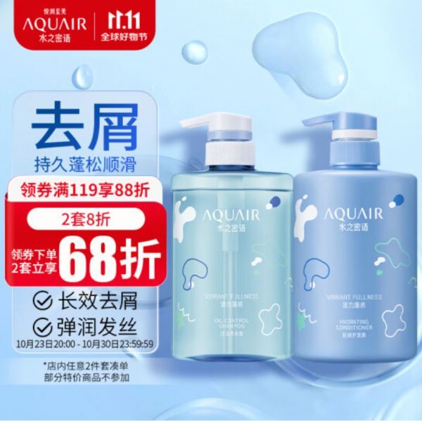 水之密语活力蓬感洗护套装洗发露400mL+护发素400mL 京东链接:https://item.jd.com/100030365845.html