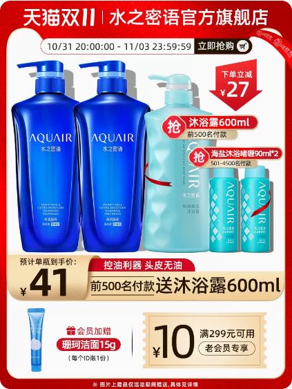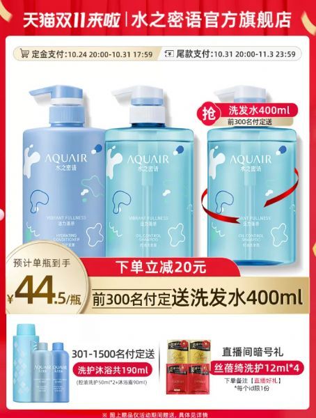 - 预售阶段,前300名付定送洗发水400mL,301-1500名付定送洗护沐浴190mL