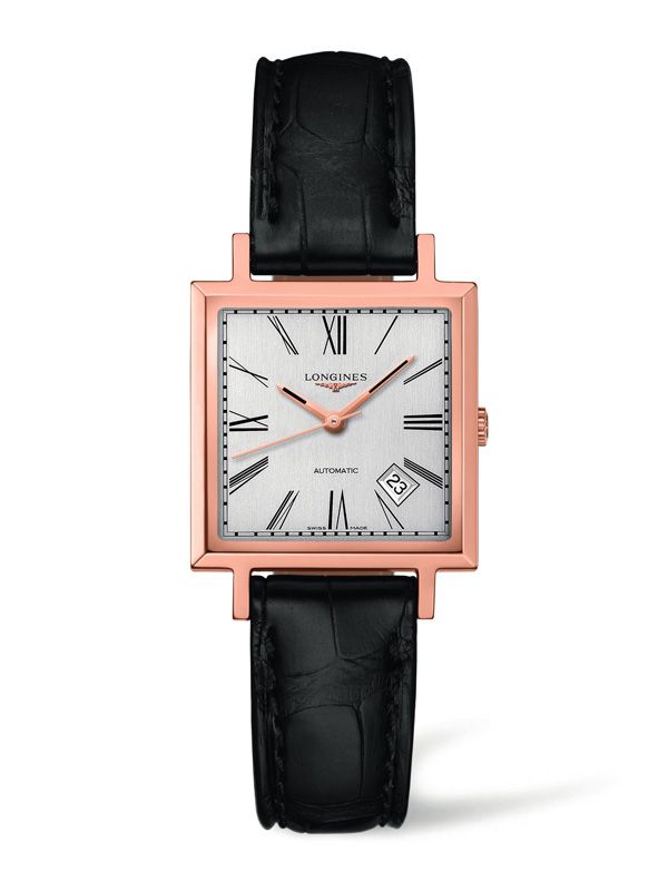 浪琴表经典复刻系列1968方形复古玫瑰金女表