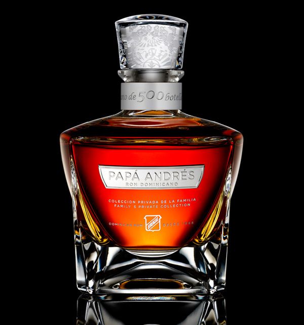 为了搭配Brugal Papa Andres限量且顶级朗姆酒,特别选用来自世界知名的义大利水晶制造商RCR制造,将它苗条的颈部赋予它华丽的金属项圈、优雅Brugal家族图案的衣领,以及来自多明尼加建筑灵感的名牌,由抛光、喷沙器雕刻而成。