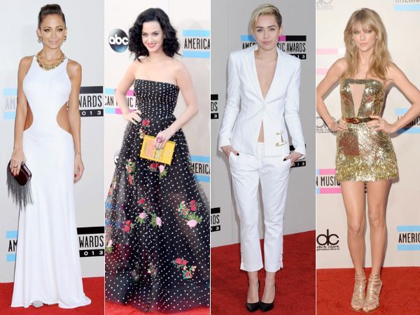 2013年美国音乐奖在洛杉矶举行,红毯上的明星着装风格抢镜,在红地毯上麦莉·赛勒斯穿的白色是一个热门趋势,克里斯蒂娜·阿奎莱拉和妮可·里奇摇摆象牙色调。