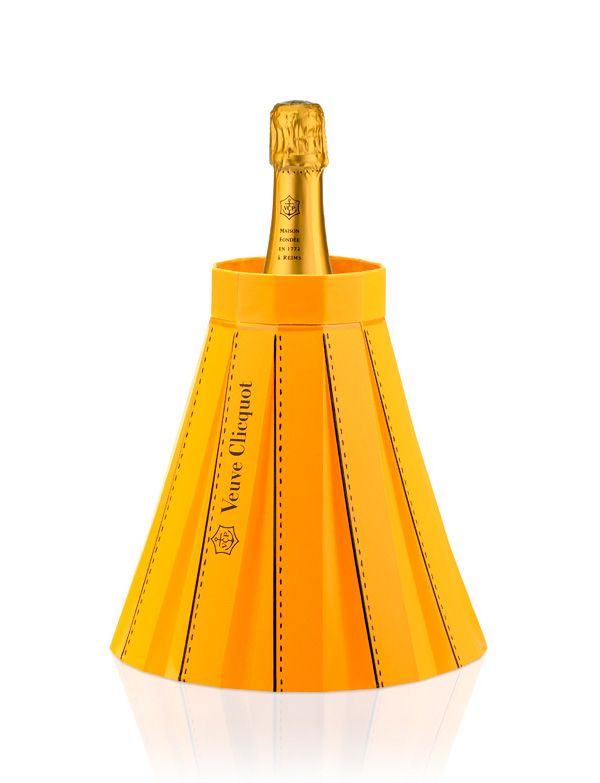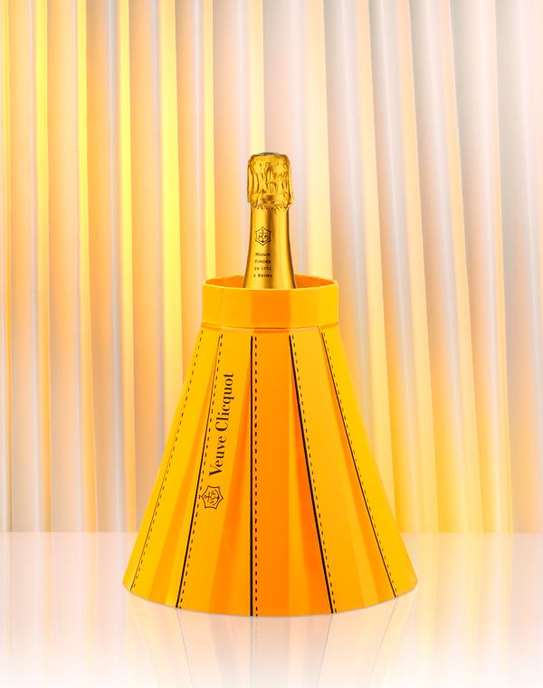 中国名品时尚网综合报道:美好的气泡与馥郁的气息让香槟总能为时尚界所宠爱;源于不经意间的褶皱之美,百褶裙总是女士心目中不舍离弃的一抹永恒风尚。一个视觉风尚符号的产生,发生在创意为凯歌香槟穿上一袭亮丽的百褶裙之后:凯歌香槟Fashionably Clicquot风尚新装以抢眼的明黄色诠释了凯歌香槟最具甄别度的色彩,黑色的罗缎带提手用体贴诠释了便携,外包装上的行李牌图案用简洁绘就着美酒与旅行的意义。包装盖揭开后,惊艳的“百褶裙”跃然而出,更带来实际功用的惊喜:这一袭华美的外衣转眼化作香槟冰桶,只需些许冰块,即可为凯歌皇牌香槟带来适宜的饮用温度。风尚雅致的外观下兼具便携性与实用性,这是对凯歌香槟果敢、摩登和先锋精神的代言;这份生活艺术的美好,一定会映衬在每一个香槟社交的风尚场合。