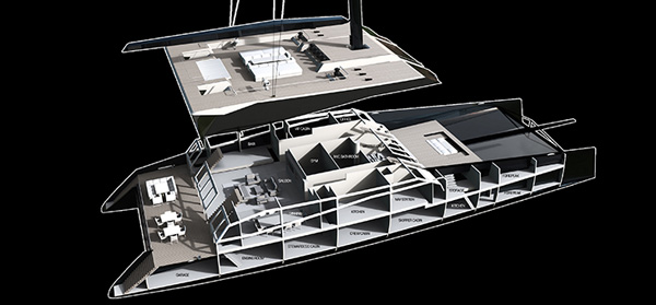 Sunreef 165 Ultimate型同样具备着高性能远航能力和杰出的安全性,其在1230平米面积帆全开的情况下,风速最大航速可达到25节。