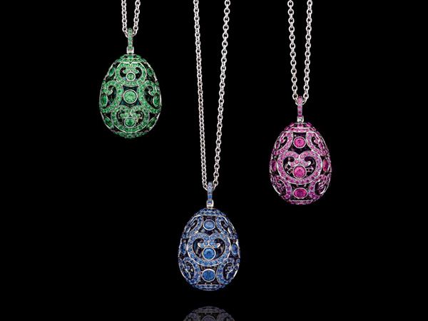 为了庆祝这场盛大的活动,FABERGÉ精心设计了一款限量版宝石流苏吊坠(Spiral Tassel Pendant),这款吊坠将于2014年4月1日起在HARRODS百货独家发售。现代、玩味、镶钻的彩蛋有着炫目的宝石流苏,用紫水晶、沙弗莱石或尖晶石镶嵌完成。
