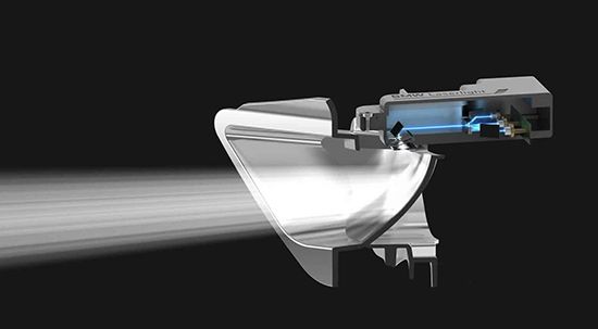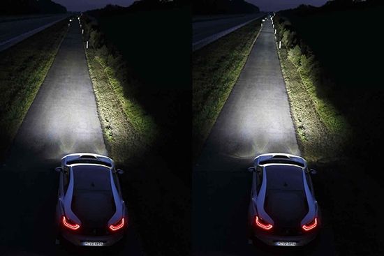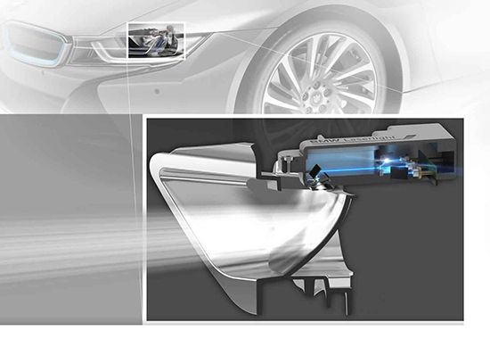 和i8所标配的LED头灯相比,这组激光大灯不但拥有更高的发光效率,同时也比LED头灯节省了30%左右的能源消耗。宝马表示激光头灯的照射距离为LED远光灯的两倍,能够达到约600公尺的照明距离。由于激光头灯皆与一套有影像辨识功能的远灯控制辅助系统整合,因此驾驶不必担心光束会干扰前车或者对向车的情况发生。