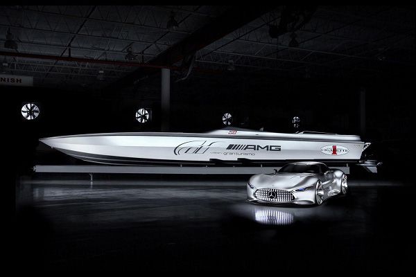 中国名品时尚网综合报道:在现今的产业活动中,异业结盟的例子可说是十分常见,但若是完全不同领域的产业互相结合呢?那这样的产品若非是十分的怪异,不然就是话题性十足!将豪华、时尚与动感实现在路上移动工具的M-Benz,以及追求卓越、极限与热血的Cigarette Racing Team赛船团队这次将要以GT6游戏中的AMG Vision Gran Turismo相结合,创造出令人肾上腺素并发的50' Vision GT Concept!