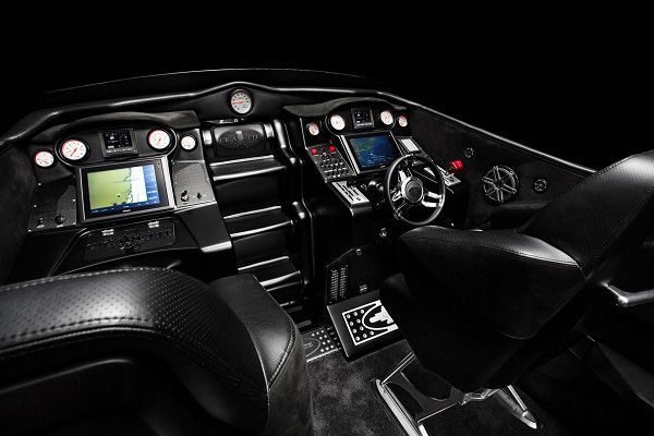 而作为横跨海洋的50' Vision GT Concept则搭载了两具有着1650hp狂暴动力输出的Mercury赛事用引擎,大量玻璃纤维与轻合金材质的使用下,比起现行贩卖的50' Marauder SS还要轻上1000磅,近6000公斤的体态最大航行速度可达225km/h,对于海上所行驶的赛船来说这样的表现可说是相当的惊人。