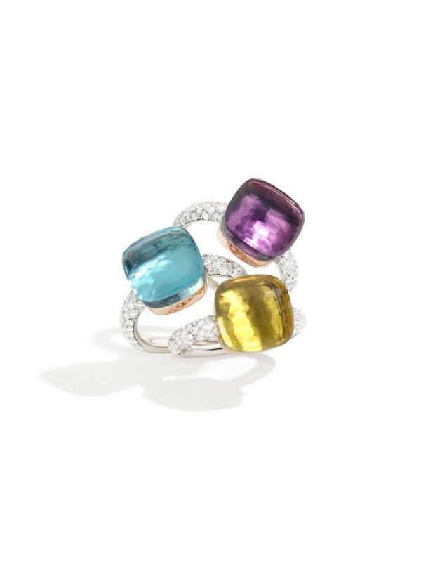 珍贵版钻饰Nudo既可独唱高歌,成为指间的绝对主角,亦可遵循着令Pomellato闻名于世的彩宝混搭理念,将色彩各异、款式不同、尺寸相别的Nudo同时把玩!