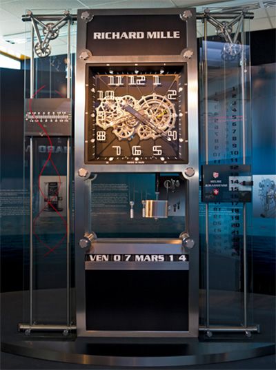 中国名品时尚网综合报道:Richard Mille(理查德·米勒)从来都知道如何打造出举世瞩目的产品——手表和钟皆是如此。就在最近,Richard Mille将其最新最大的产品展示出来了:献给魁北克的市钟。这个巨大的钟高达11英尺,重量达4,000磅,是Richard Mille史上最大的钟表之一。该钟表不仅仅是体积大,重量大,在设计方面也足以媲美高级制表:两个显示窗口分别用来显示当地时间的小时和分钟显示,另一个则用来显示第二区时(Richard Mille的发源地法国东部地区的汝拉省)以及万年历。