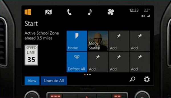 微软目前的雏形采用了MirrorLink“车联网”标准,原型产品在汽车中控台屏幕并不是简单地投射了手机的用户界面,该车载系统具有很明显的微软特色,包括开发者可以开发专门为汽车设计的应用;有些地方出现了应用商店;界面看上去很像迷你版的Windows 8;磁贴和主界面以及收音机、地图和应用之间可以通过滑动切换。