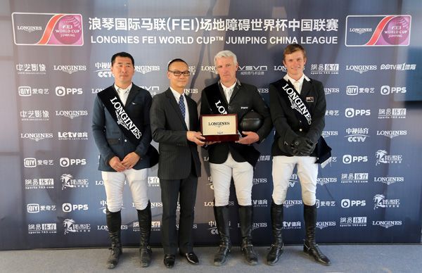 浪琴表十分荣幸开启品牌与浪琴表国际马联场地障碍世界杯中国联赛之间的合作伙伴关系,并作为冠名合作伙伴与官方计时为赛事提供计时技术。4月27日,2014浪琴国际马联场地障碍世界杯中国联赛第一站世界杯赛(150CM)在朝阳公园马术场落下帷幕,最终法国骑手罗杰·伊夫·博斯特凭借精湛的骑术和丰富的比赛经验,策骑“wavanta”在附加赛中以43秒48的最短时间完成零罚分,一举夺魁。来自新西兰的骑手卢克·迪(Luke Dee)与中国骑手刘同晏分列二三位。此外,浪琴表还将分别于5月3日周六以及10月7日周二呈现三场赛程中的后两场重点赛事。
