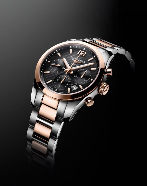 作为诸多世界上最负盛名的马术运动的合作伙伴,浪琴表一直致力于推出一款能在赛马场上最精彩的赛马亮相时刻所佩戴的腕表。这款直径41毫米的计时秒表,精钢和玫瑰金表壳及表链,内置L688导柱轮机芯。黑色表盘上刻有1个阿拉伯数字刻度和11个夜光小刻度,显示时、分,9时位置设小秒针,30分钟累计表盘设于3时位置,12小时累计表盘设于6时位置,日期显示窗设于4:30分位置。与康铂系列所有表款一样,这款腕表防水功能达5个大气压,螺旋式表背配以蓝宝石水晶。