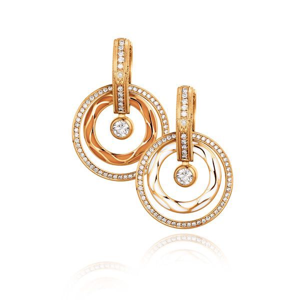 情感和记忆,力量和守护:珠宝,不仅仅是一份礼物,它将款款深情凝集其中。华洛芙守护天使耳环以圆形外观为主题设计,柔滑细腻,协调完整,同时将金 色珐琅和白色珐琅呈现于耳环的正反两面,这种巧妙的设计使得耳环可以随意翻转并且适合于不同的风格:或简单随意或复杂多变,或经典优雅或现代时尚,或高贵 浪漫或风趣幽默。耳环搭扣设计灵巧精致,并镶嵌有一圈耀眼的钻石。华洛芙珠宝的精湛工艺以及它所诠释的关于爱的内涵同时也体现在耳环的中心钻石吊坠上。吊 坠通过环扣与耳环完美相连,跟随佩戴者的脚步轻轻摆动,折射着幸福的光芒,诉说对母亲的感恩。