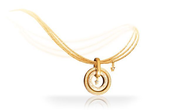 华洛芙“甜蜜天使”吊坠将现代的设计与古老的传统巧妙地结合在一起,隐藏在项链中的守护天使,寓意为您带来如影随行的守护,直至永远。整个吊坠以华 洛芙指环为设计原型,由内环和外环相互套入组成,它们可以单独拆开独立佩戴,也可以二合为一同时佩戴,随意翻转出华洛夫珐琅的多彩一面或镶有钻石的璀璨一 面。全新的华洛芙扣锁设计简单,使用方便,而且还能将黄金天使吊坠坚固而稳定地安置其间,若将其打开,黄金天使吊坠会直接悬挂在金丝编花项链之上,而吊坠 的内环外环则可以任意翻转。