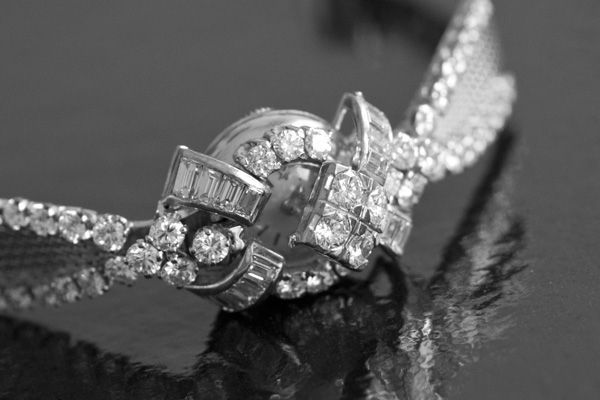 这款罕见的女款“隐匿式”珠宝腕表诞生于1955年,因表盘隐藏于钻石装饰下而得名。腕表由18K白金打造,镶嵌有50颗明亮式切割钻石与16颗方形切割钻石,总重达6.5克拉。表盖、表圈和米兰式织网表链均嵌有钻石。这款非同寻常的时计采用乳白色表盘,抛光棒形指针,搭载440机芯,表冠位于表壳下方。