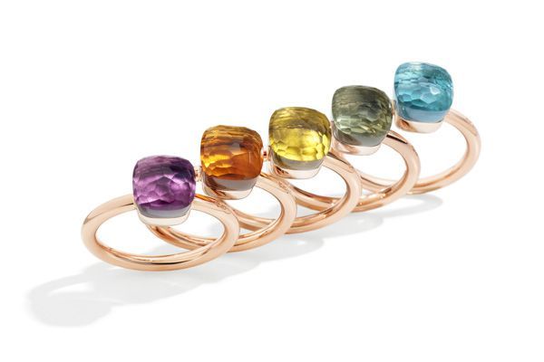 Nudo Petit系列戒指,玫瑰金及白金镶 紫晶、马德拉石、柠檬晶、绿紫晶和蓝色托帕石,售价RMB 10,800