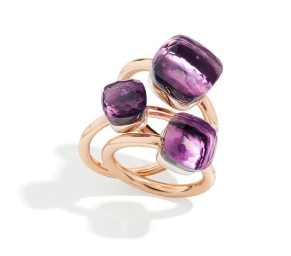 Nudo Classic系列戒指,玫瑰金及白金镶紫晶,售价RMB 17,500 Nudo Maxi系列戒指,玫瑰金及白金镶紫晶,售价RMB 25,500