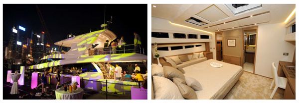 以维多利亚港作舞台,在有着160 年悠久历史的皇家香港游艇会码头,以两岸摩天大厦发出的闪耀灯光为背景,PRESTIGE 750 在大家翘首以盼的目光中缓缓驶近,成功完成了亚太区的首次亮相。